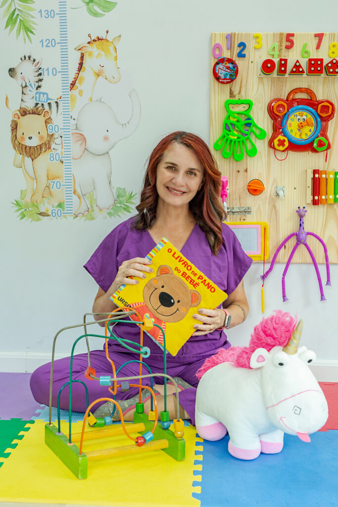 Então, essa ideia do segmento longitudinal, de ver a vida da criança até se tornar um adulto é o que me completa; hoje eu atuo só com crianças e adolescentes, especialmente com transtornos do neurodesenvolvimento como autismo, TDAH e deficiência intelectual; atuo também com crianças com deficiências físicas como paralisia cerebral e epilepsia. Incorporo uma abordagem completa, que entende que a criança é muito além do seu diagnóstico. Dentro da minha atuação eu tenho uma conversa muito próxima com as escolas, por exemplo.